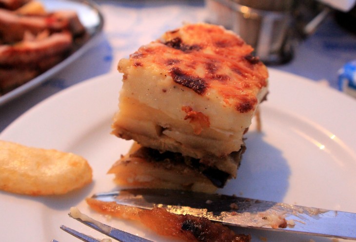 Только здесь греческая мусака высотой в 10 см! Отличное обслуживание, всегда в подарок бутылка холодной воды и фрукты, если оставите небольшие чаевые. В общем, как только мы отыскали это уютное местечко, ужинали там каждый вечер. В среднем, ужин на троих взрослых с вином стоит порядка 25-30 евро.