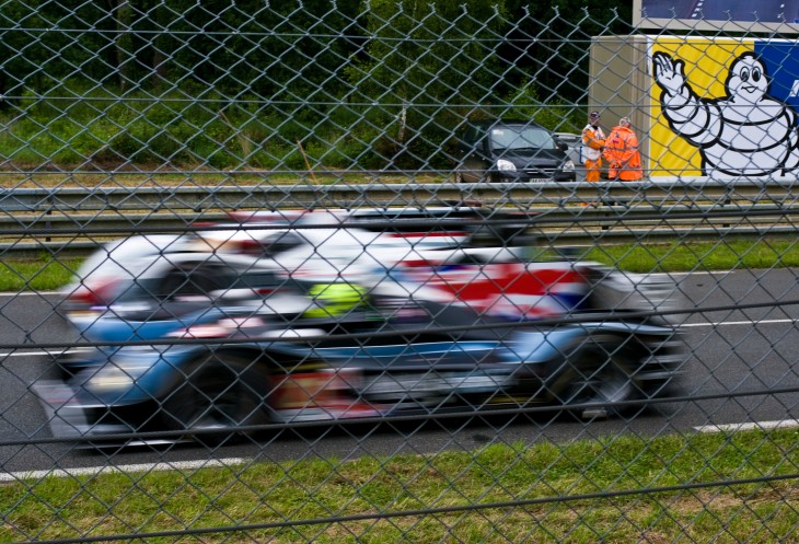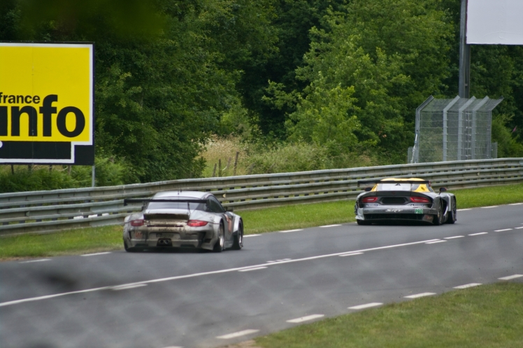 С точки зрения наблюдения за гонкой, Арнаж не лучшее место. Зато здесь прекрасно слышны моторы. Корветт с 10 метров - до боли в ушах. С 15 уже нормально все. Если подвинуться к самому повороту, картинка меняется.