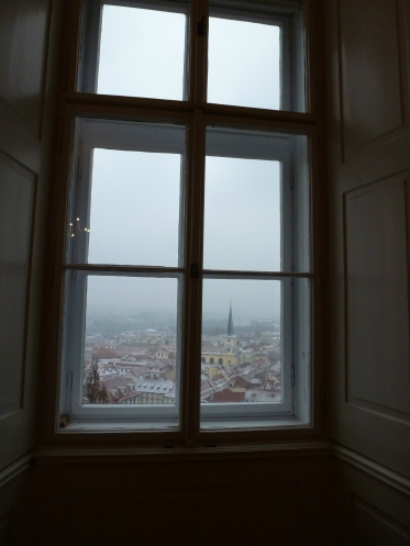 Трамваи еще и не думали ходить. Самый короткий путь до метро через Пражский град. На удивление скоренько до него добежали и пересекли тоже достаточно быстро. Выйдя через Восточные ворота, мы резко тормознули – ведущая вниз Старая замковая лестница блестела как зеркало. Голый лед! Как спускаться? Оглянулись на ворота Пражского града, на Черную башню, сочувственно смотревшую нам вслед.