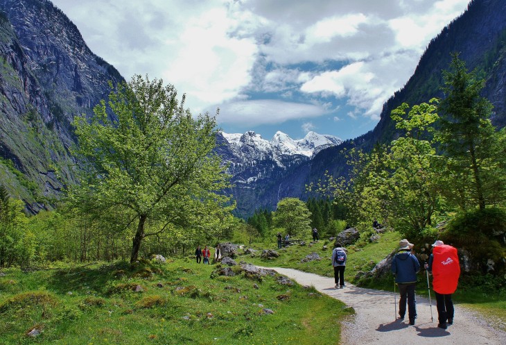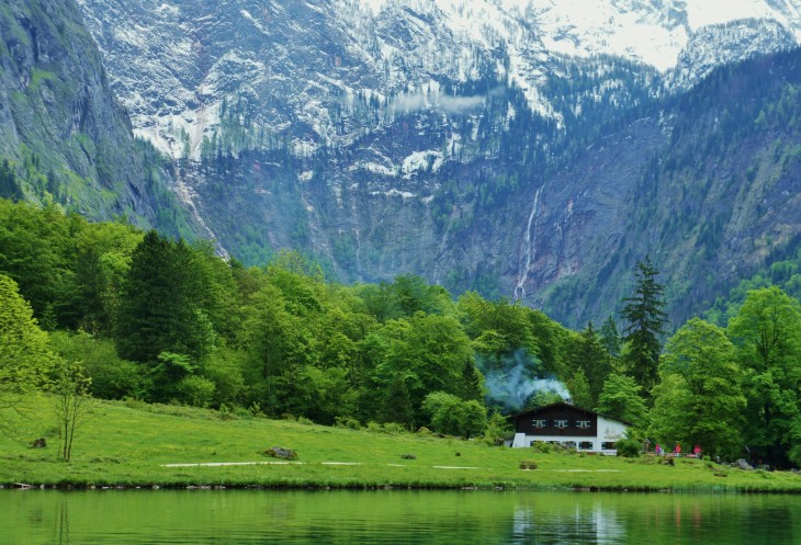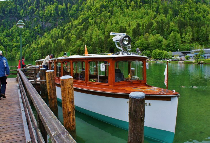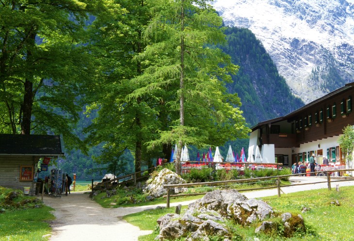 В буклете есть предупреждение для туристов, что в обратный путь желательно отправиться не позднее 14:30. Здесь нет места для ночлега, и если опоздать на последнюю лодку, то придётся туго. У нас в планах был ещё обед здесь на озере. Поэтому мы вернулись назад к Кёнигзее, пообедали в кафе и поспешили в обратный путь.