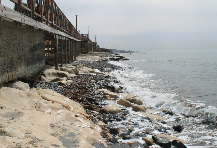 Здесь, у древней стены, на берегу моря уже не песок, а очень красивые камушки...