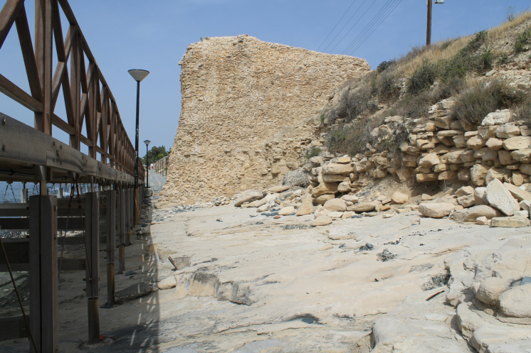 Если от нашего пляжа пойти по дорожке вдоль моря налево - можно было, минуя пляжи вышеперечисленных отелей, дойти до ближайшей достопримечательности - развалин древнего города Аматус, расположенных на высоком холме над дорогой, и некоторыми элементами развалин - у самого моря. Здесь дорожка переходит в деревянный настил, а потом и в своеобразный "мостик", идущий вдоль подножья всего холма до очередной отельной зоны. Как я понимаю - там уже пригород Лимассола, город заканчивается у холма Аматуса.