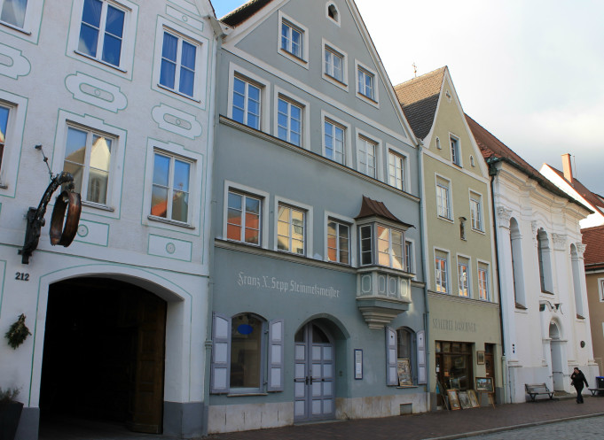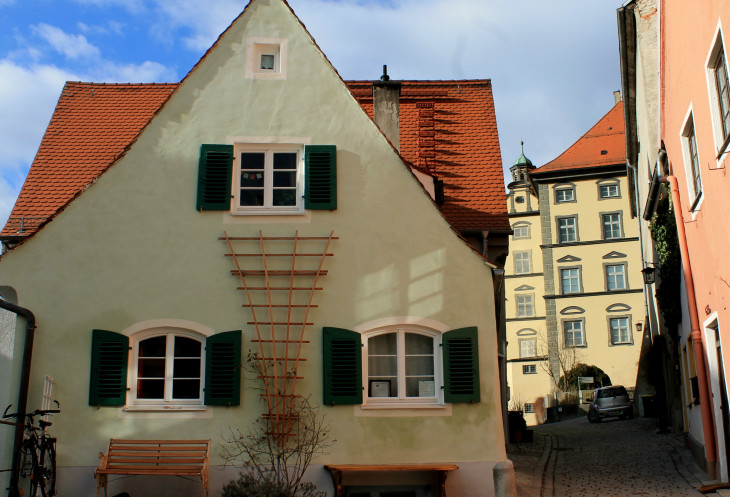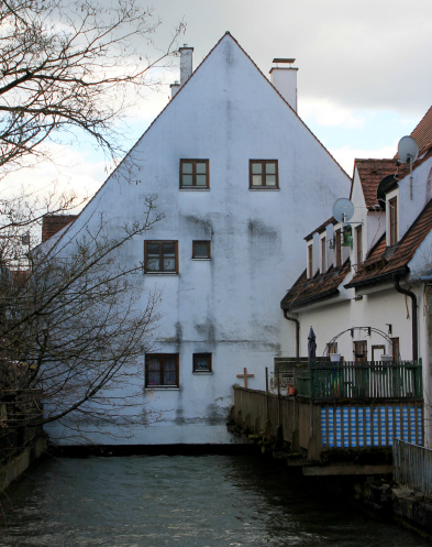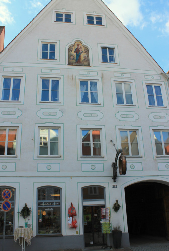 Затем я направилась в сторону реки. По дороге мне встретился вот такой замечательный домик. Где-то я уже похожее видела? Ах да, соляной амбар в Меммингене- вот на что это было похоже. И действительно, как потом я узнала, это бывший соляной амбар. Раньше Ландсберг, так же, как и Мемминген, стоял на так называемом "Соляном пути". Со временем, этот прибыльный для горожан бизнес, закончился. И вот тогда-то этот дом перестроили в обычный жилой. Не знаю, как он выглядел раньше, но сейчас вполне себе симпатичный.