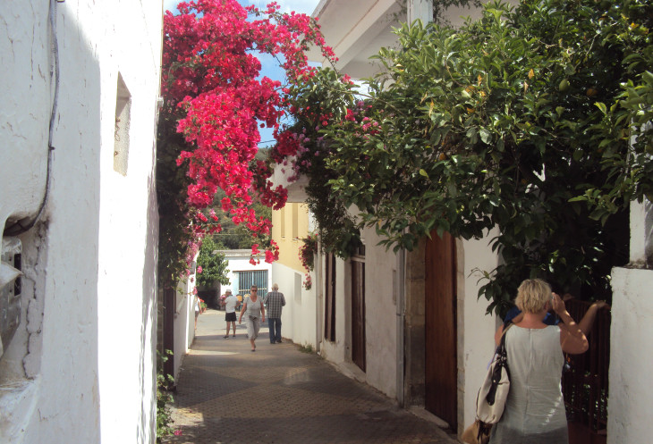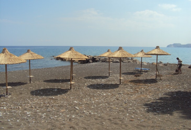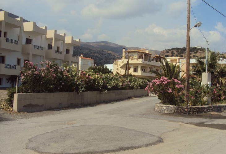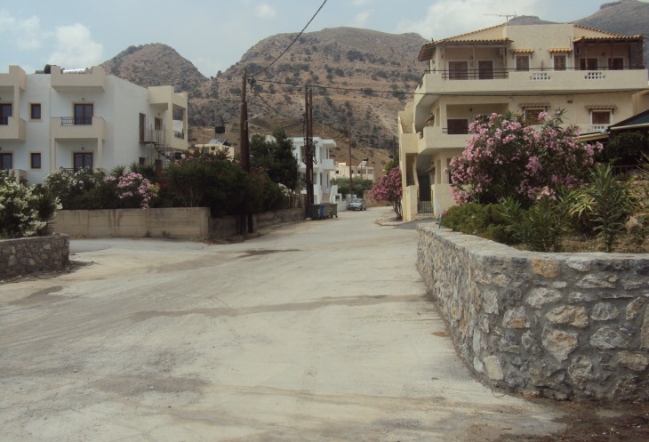 Постепенно спускаясь мы прибыли в конечный пункт- городок Цуцурос. Это очень маленький населенный пункт на берегу Ливийского моря. Очень маленький и очень таинственный. У меня сложилось впечатление, что городок попросту "вымер". Ни одной живой души. Ни людей, ни машин. Только в таверне мы увидели несколько человек. Там играла очень спокойная заунывная греческая музыка. Хозяин таверны выпивал со всеми "чисто символически" вина. Мне очень понравился этот тихий таинственный городок
