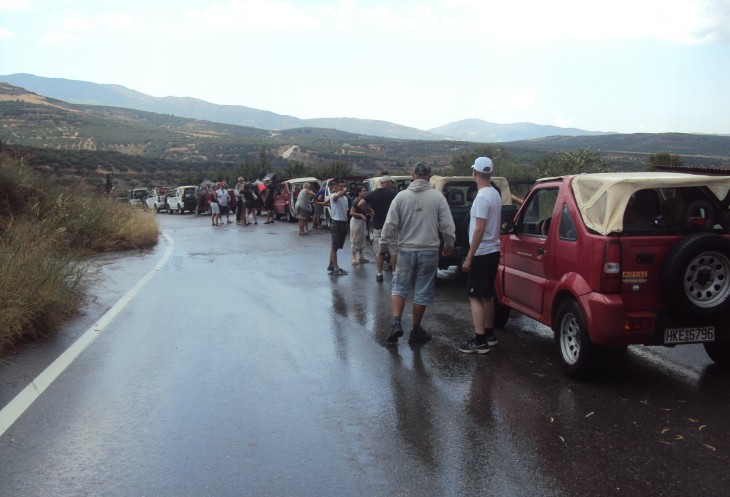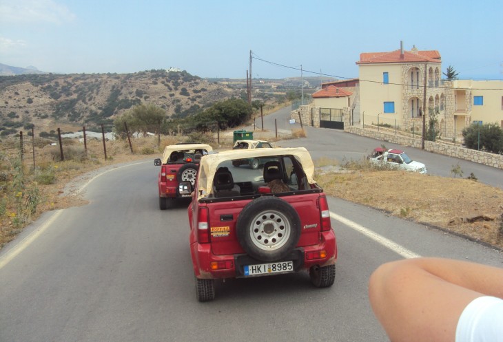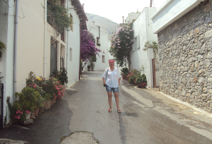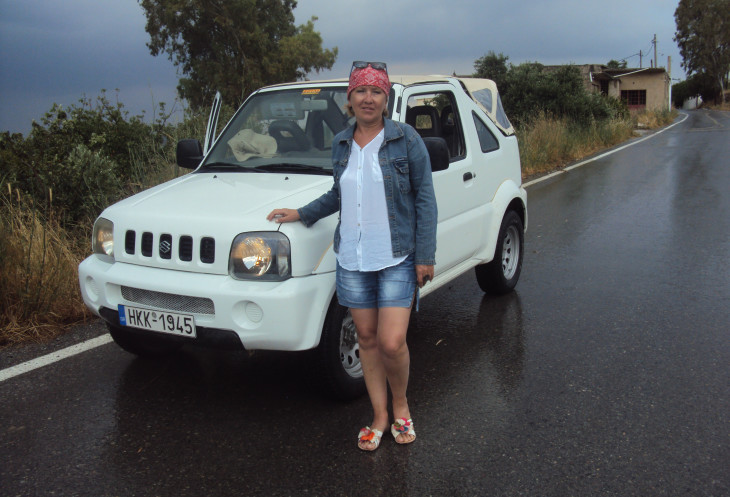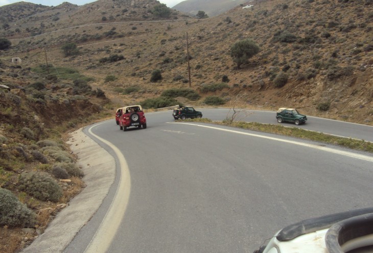 Нам предстояло переехать на другую сторону острова через горы, на южное побережье Крита к берегу Ливийского моря. Нас было 10 машин, в каждой по 4 человека. Ехали цепочкой друг за другом. Впереди машина Тани с ее «телохранителем». Шутка, конечно. Но он похож на телохранителя. Иногда их машина останавливалась, телохранитель снимал нас на камеру и громко призывно кричал Hallo! И мы все по очереди кричали ему Hallo! Было классно!!! Я себя ощущала счастливой!