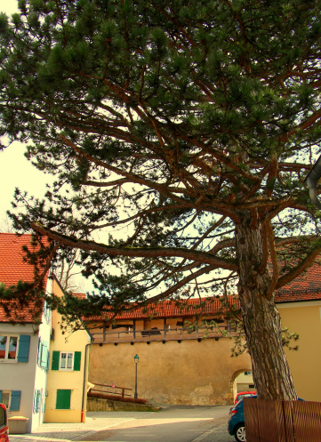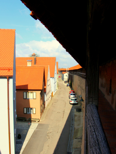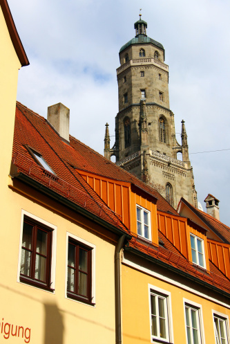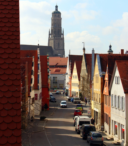 Куда бы я не посмотрела, почти обязательно видна была башня Даниэля- ведь это самое сердце Нёрдлингена, а городок-то совсем небольшой. От стены к башне лучами идут городские улицы- по какой не пойдешь, обязательно придешь к собору Святого Георга, частью которого и является башня.
