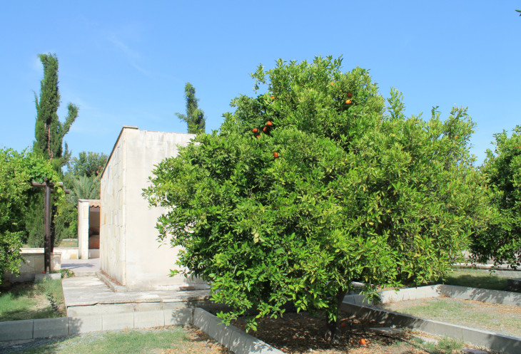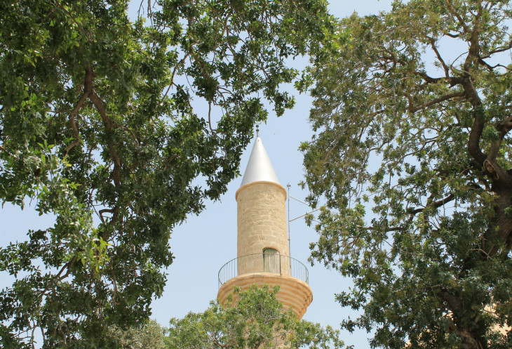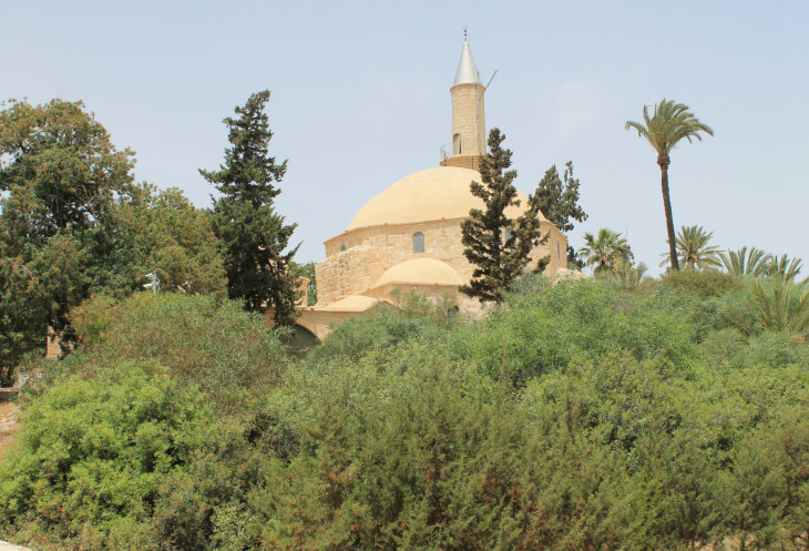 Территория вокруг мечети - как оазис в пустыне. Кроме шуток, окружающая территория напоминает пустыню очень - только барханов не хватает. Выжженная земля, чахлые кустики, высохшая до состояния сена малочисленная трава... Кипр и так не славен буйной зеленью, а той весной жара началась рано, и дождей почти не было... Зеленело только то, что поливали, то есть территория вокруг мечети.