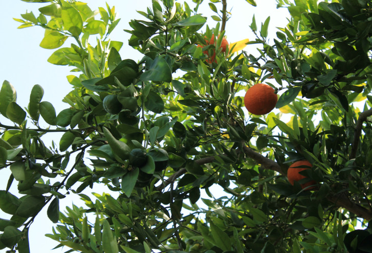 На многих деревьях одновременно висят и зеленые, и оранжевые плоды! Что за чудеса? Нам объяснили, что плоды мандоры созревают к декабрю, и вот с декабря и до лета спелые плоды вият на ветках, сохраняясь во вполне себе съедобном виде за счет каких-то особых свойств дерева. А когда весной мандора цветет - после этого на ветках появляются уже зеленые плоды, и в мае-июне на деревьях можно наблюать вот такое "двухсезонье")) И в это время мандора начинает сбрасывать прошлогодние плоды.