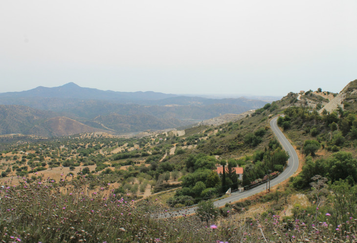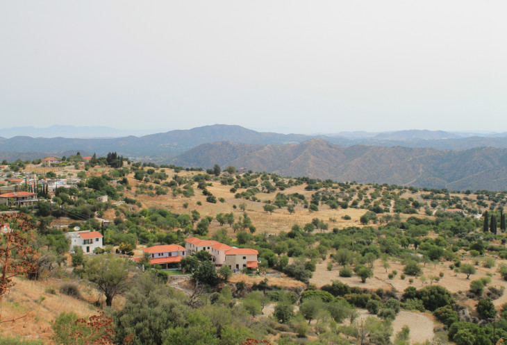 Мы поехали от Лимассола куда-то на северо-восток. Первым местом остановки была знаменитая кипрская деревня Лефкара. Вернее, сначала мы остановились у какого-то здания на дороге, с замечательным видом на саму деревню и долину вокруг нее.