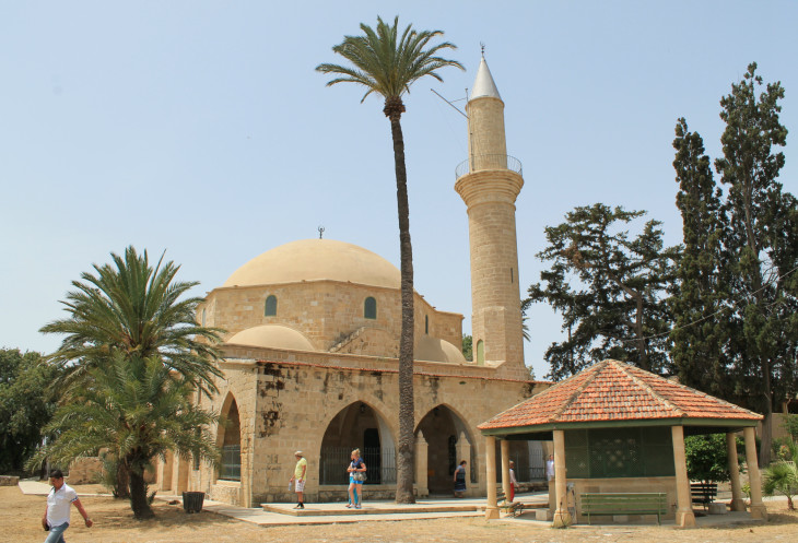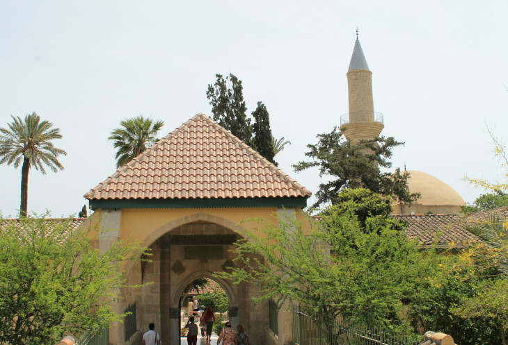 Перед Ларнакой мы свернули влево - нам предстояло еще посмотреть знаменитую мечеть Хала Султан Текке, четвертую или пятую (?) по значимости мусульманскую святыню мира. Мечеть стоит на берегу Соленого озера Ларнаки, которое летом пересыхает. Ну а мы были в мае - поэтому пересохнуть оно еще не успело. Прикольно было бы увидеть это озеро зимой - говорят, сюда как раз зимой прилетают многочисленные фламинго...