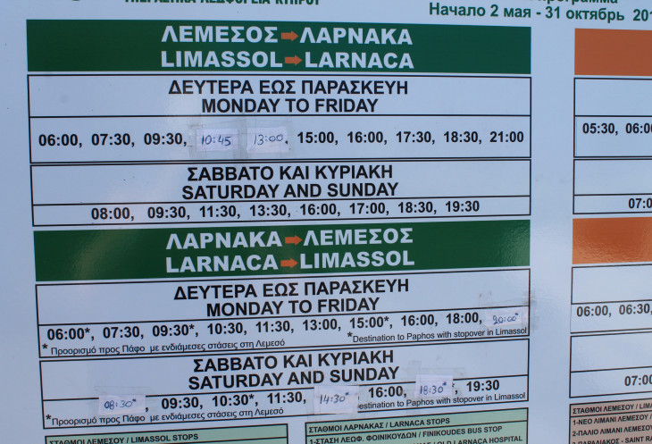 сайт. В расписании даже написано, где, в каких местах, на каждом курорте междугородние автобусы делают остановки. Единственный минус междугороднего автобусного сообщения на Кипре - автобусы ездят только между курортами, сквозного движения через всё побережье (как, например, в Черногории) - нет. Поэтому тем, кто хочет добраться из Лимассола в Айя Напу, например, нужно будет сделать пересадку в Ларнаке. Из Пафоса конечно добираться сложнее, но некоторые автобусы ездят из Пафоса транзитом через Лимассол до Ларнаки.