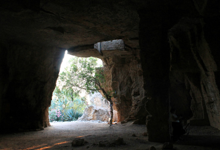 Это какое-то чудесатое место непонятного назначения. На горе - множество сводчатых пещер, полукруглых и прямоугольных, напоминающих гаражи... Все рукотворные, по времени создания относятся (предположительно) к III веку до нашей эры, то есть ещё к эллинским временам. Между пещерами присутствуют ходы, многие из них местами засыпаны. Ходить нужно осторожно - местами встречаются провалы вниз - типа тех колодцев, которые мы видели в большой пещере.