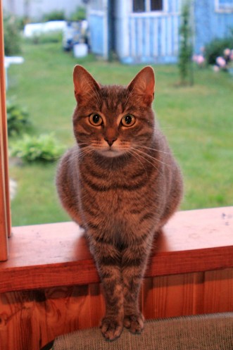 Каждое лето, с мая по сентябрь, хозяином на даче становится наш любимый котик Тимофей. Для него здесь раздолье – спит в доме в кресле или в теплице для огурцов, ловит воробьев, дружит с соседскими котами и щенятами (глупый), приводит их к своим мискам покормить:))