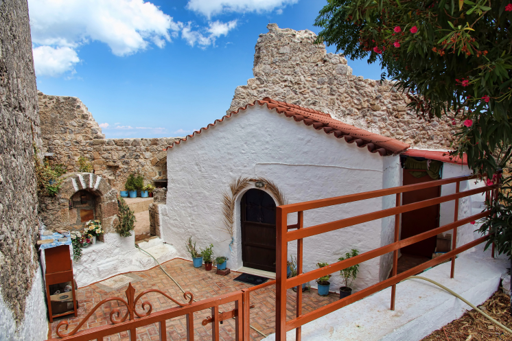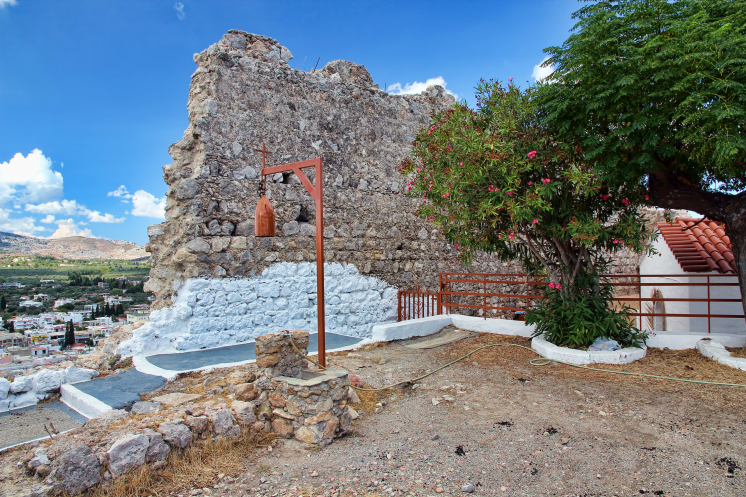 Крепость Асклипио была построена в XIII веке теми же рыцарями. Интересно, что она расположена не на побережье, а в глубине острова. Что и от кого она защищала - мне, со стратегической точки зрения, не совсем понятно, но внутри когда-то был замок. Может, крепость защищала как раз его обитателей от коллизий в неспокойном средневековом мире. Сейчас от крепости остались стены, башня и катакомбы. Внутри стен есть что-то вроде колодца, спуск вниз. По легенде, в крепости имеется тоннель (если так, то он должен быть очень длинным), который ведет вниз в деревню и заканчивается в одном из жилых домов. Крепость интересна еще и тем, что археологи обнаружили в ее стенах артефакты VII века до нашей эры. Отсюда появились предположения, что на месте замка когда-то был храм, который собственноручно строил бог медицины и врачевания Асклепий. В честь него и названа близлежащая деревня.