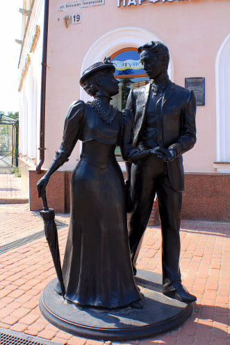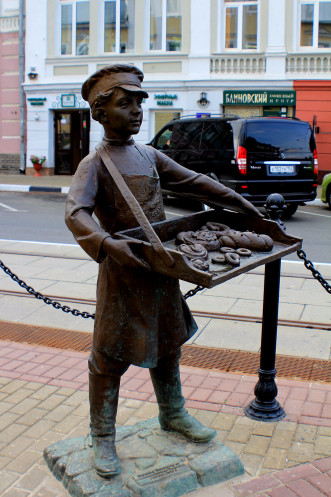 Очень много скульптур на Покровской улице, все интересные. Да и сама улица с какой историей – что ни дом, то легенда и достопримечательность города! Как и на московском Арбате, повсюду художники, уличные музыканты, очень много сувениров.