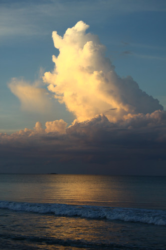 Ни одно фото не передаст этой красоты! Когда ты в воде и смотришь на солнце, а оно уже не кусается а нежно целует твою кожу, океан охлаждает и греет тебя... вода теплее воздуха... или так кажется... Блаженство! Для всех рецепторов! А потом, насмотревшись на то, как солнце отражается в океане и играет на его поверхности, ты ложишься на спину и смотришь в небо! В небо голубое с облаками, белыми-белыми, чистое небо, очищает твой взор! Волны тихие, но все же еще есть, они какой-то абсолютно другой силы сейчас... ты нежишься в них, вторя их движениям, качаешься на волнах, океан тебя баюкает и успокаивает... ооооухххх... райское наслаждение!