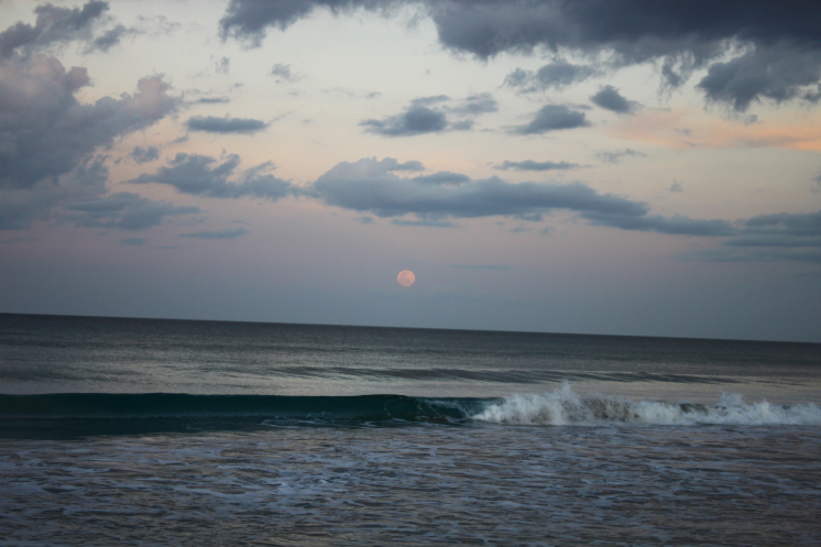 На следующий день, после того как обгорела, я исправилась – пошла на пляж с раннего утра, одевшись в одежду максимально скрывающую тело (идти было 10 минут, но солнце злющее… моментально вгрызается в кожу!). Но более всего меня впечатляло купание на закате… Это такой кайф! Чувство было, что океан тоже устал от жары и у него была такая тихая радость (прям как у меня), что солнце заходит! Такая энергия от него исходила... блаженная, спокойная... ээээээх! А затем красота! Луна, облака еще долго были белыми, а потом начали переливаться разными красками…фиолетовыми, розовыми, желтыми... такая красота!