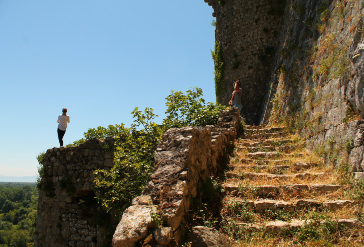 Дорога на крепость - минимальной степени сложности, ступенек нет - мы шли по заросшим травой камням, такое ощущение, что это какая-то древняя дорога, по которой поднимались повозки с запряженными осликами. Причем дорога, идущая "зигзагом", по типу серпантина, хорошего качества, просто уже за давностью лет заросшая травой.