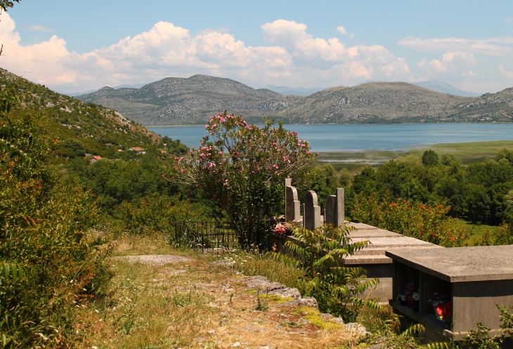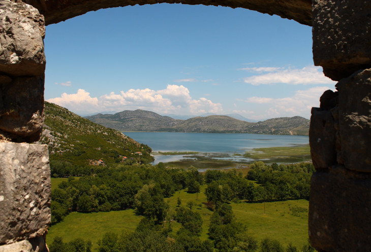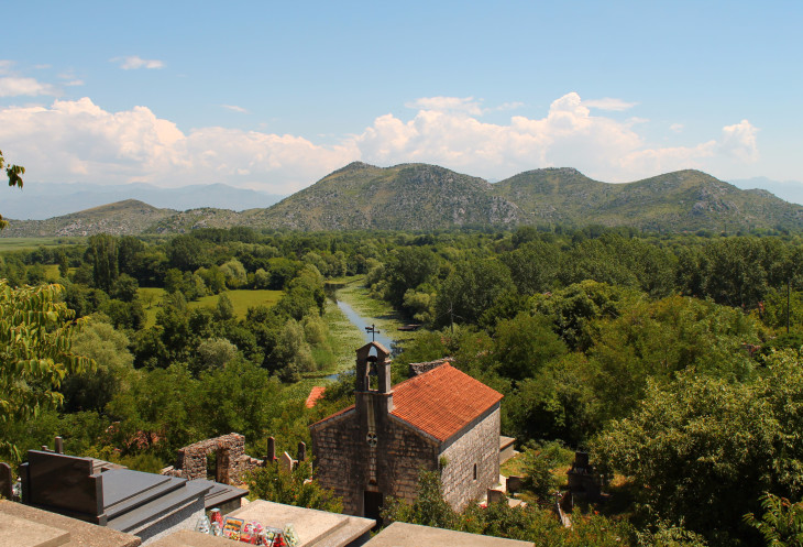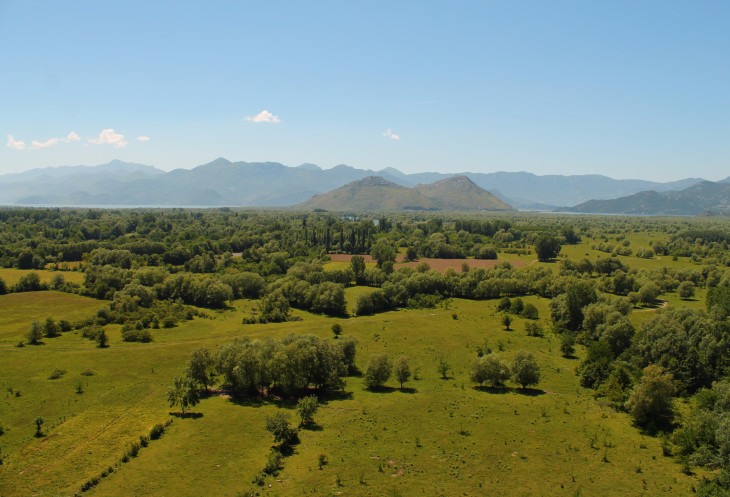 Вид с моста на юг, в сторону Скадарского озера и гор с тоннелем Созина.