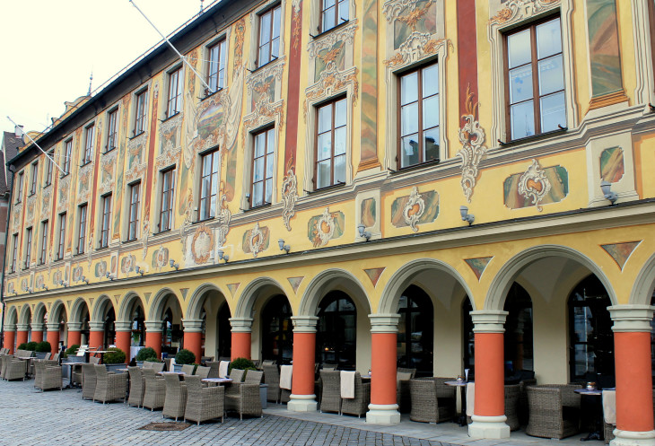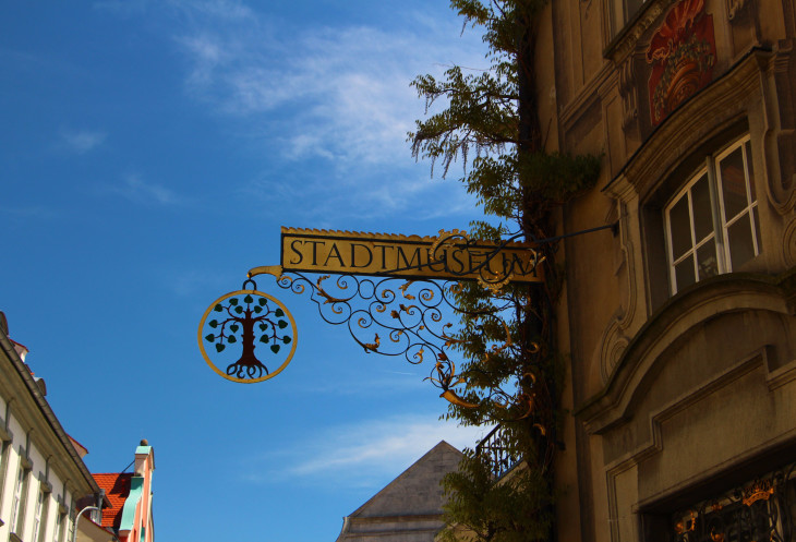 Мне очень понравилась вывеска, указывающая на дом баварского танца в Меммингене