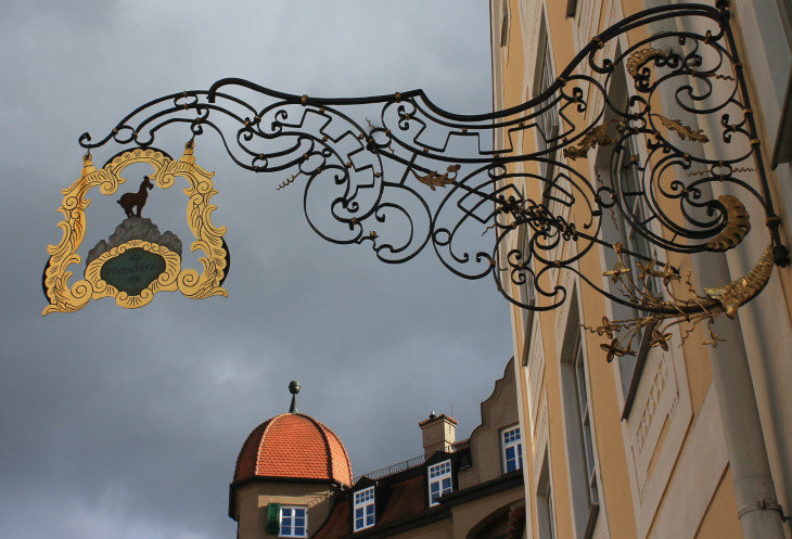 Видно, что в Баварии искусство изготовления вывесок очень давнее, чувствуется, что многим вывескам не один десяток а может и сотен лет. Я думаю, что такие замечательные вещи украшают город и привлекают внимание не только местных жителей, но и многочисленных туристов. По-этому новые рестораны тоже стараются обзавестись подобными вывесками.