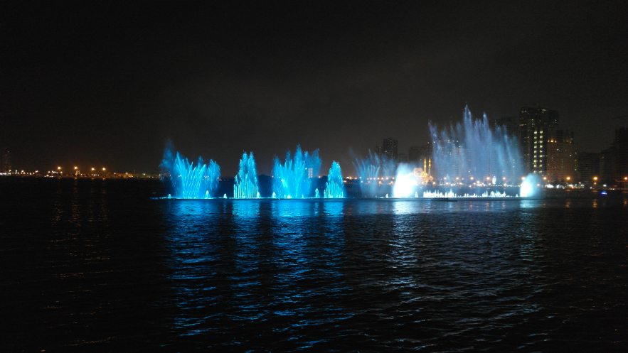 Посмотрев этот каскад музыки, воды и света, продолжили своё дальнейшее путешествие по набережной Аль-Бухейра. Интересно было наблюдать, как прямо на газончиках парка, на самих аллеях набережной расположились жители Шарджи целыми семьями и в одиночку. Повсюду работали многочисленные едово-питьевые (во как придумал назвать!) точки и кафе, в которых было довольно-таки много посетителей. Прямо-таки настоящий праздник жизни!