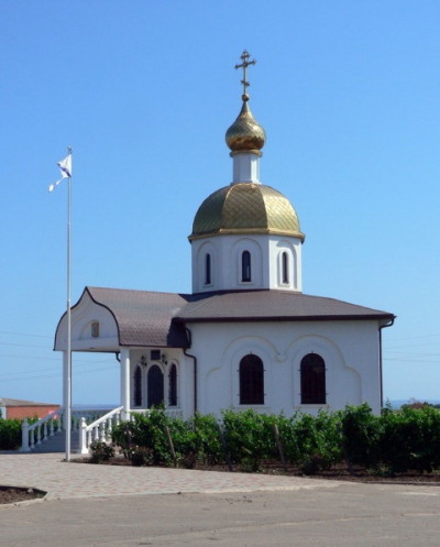Храм-часовня Феодора Ушакова на въезде в станицу Тамань, неподалеку от таманского винного завода «Шато-Тамань». Часовня постоена в 2008 году к 2600-летию Гермонассы-Тмутаракани-Тамани и над ней всегда развевается Андреевский флаг.