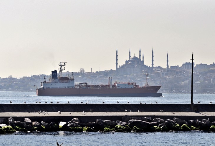 через пролив Босфор постоянно проходят огромные танкеры и сухогрузы... а в порту района Бейоглу стоят круизные лайнеры...