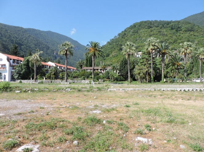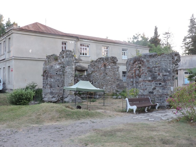 Далее направился в Пицунду. Пицунда встретила меня развалинами древнего Питиунта. Остатки крепостной стены. В центре стоит древний Пицундский храм- Патриарший собор в честьАпостола Андрея Первозванного. 6-9 век. Храм окружен стеной и на этой територии небольшой, но прекрасный музей. Так же я погулял по Пицунде.
