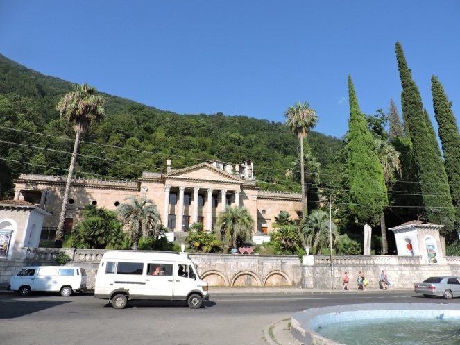 Это великолепный курортный поселок. Почти сразу же можно, чуть свернув от центра проехать и посмотреть Жоэкварское ущелье. В центре Гагрская крепость Абаата и гагрский храм. Все это 4-7 век. Напротив замок принца Ольденбургского. Здание начала 20 века. Далее великолепный приморский парк с огромными пальмами, в нем Гагрская колонада, построена в середине 20 века. Потом поехал на гору Мамзишха, где есть смотровая плошадка с видом на Гагры, Черное море.