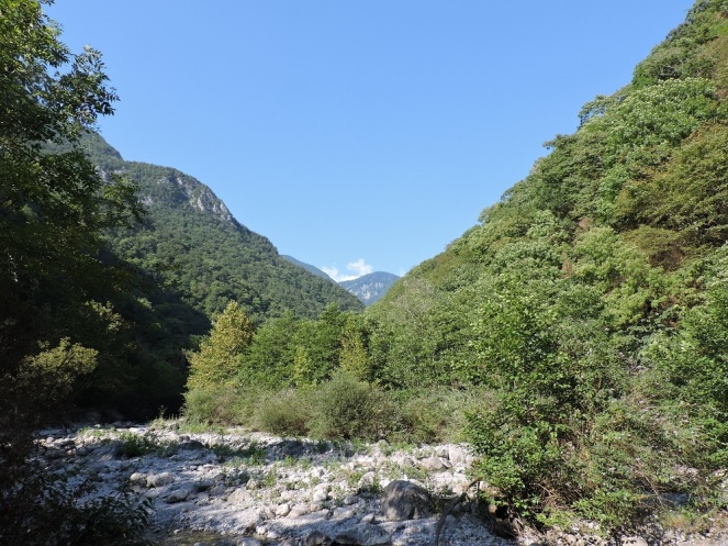 Обычный курортный поселок со всеми атрибутами, но народу меньше, чем в Краснодарском крае. Перенрчевав в Пицунде искупавшись с утра в чистейшем Черном море я направился в Рицинский национальный парк.
