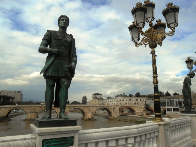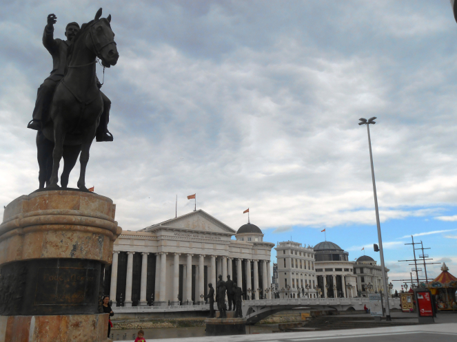 Но то что нас несомненно поразило, так это обилие памятников на главной площади Македония. Здесь встречаются статуи любых форм, поз и личностей: от памятника нищему