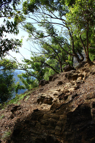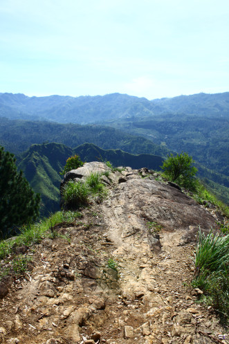 Поднимаешься по лесу, а так как я вышла рано, солнце не светило сверху, и было приятно прохладно, и вот я наверху и сразу же эта скала! Виды с нее - прекрасные, холмы пробиваются сквозь дымку хребтами различных оттенков, все зеленое-зеленое, внизу дорога, как нить, а по ней крошечные автобусы ездят, именно по этой ниточке, я отправлюсь на юг... но позже.