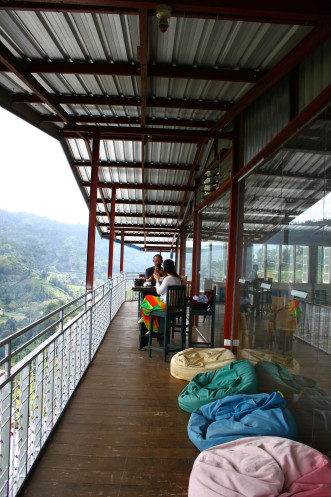 Опорожнила дегустационные чашки, и принялась заказывать чайнички (я же пью чай ведрами). Сидеть там было одно удовольствие! Балкон с видом на холмы (и Эллу тут видно, и малый пик) и зелень... Красота неописуемая. И прохладно, и подушки такие на полу, и стулья высокие, все как я люблю... полный восторг! А запах... Я бы там жила. Внутри есть цех горячий по «жарке» чая - это ад. Там такая жарища, я в таком горячем цеху еще ни разу не бывала.