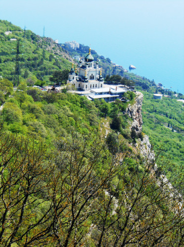 Сделав соответствующие фотографии и поставив свечки в храме, мы поднялись чуть выше к Байдарским воротам. Оттуда открывался уже более обширный вид на побережье и саму церковь.