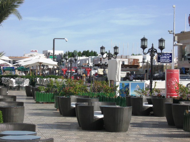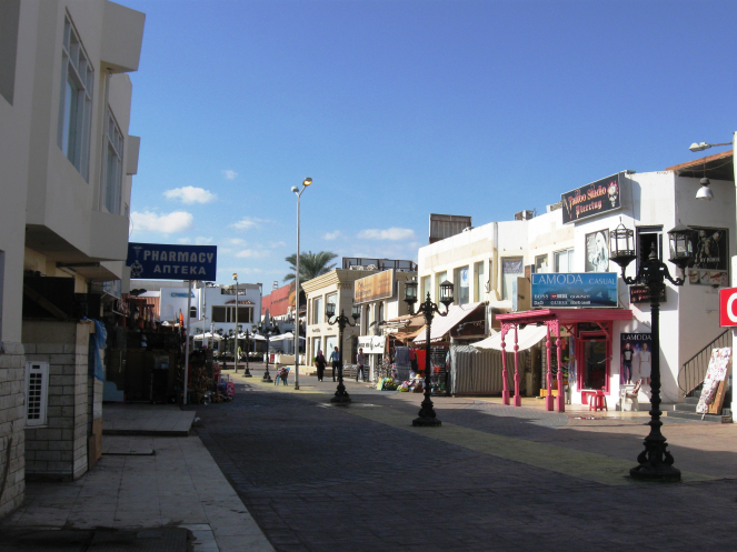 Немного городские улицы оживают по вечерам. Город прихорашивается, включает огни, открывает лавочки и магазины. Продавцы навязчивы. Любыми средствами стараются затащить в свои лавки покупателей. Фраза "Ля. ШукрАн(Нет. Спасибо)" действует безотказно. Основными отдыхающими славянами в Шарме остались ураинцы и белорусы. На вечернем променаде к нам часто обращались: Украина, давай, заходи смотреть. Услышав в ответ: Not Ukraine. Russia, - меняются в лице, расцветают улыбки и сразу основной вопрос: Как прилетели? Когда русские снова приедут в Шарм? Плохо им без нас. Торговли нет.