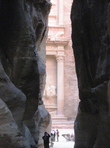И вдруг, совершенно неожиданно, между скалами, в узком проходе, возникают розовые колонны Эль-Хазне (Сокровищницы).