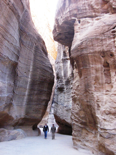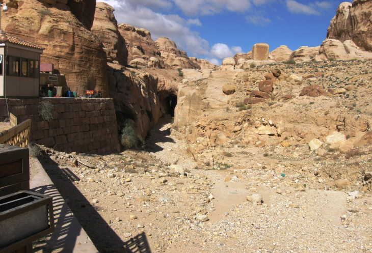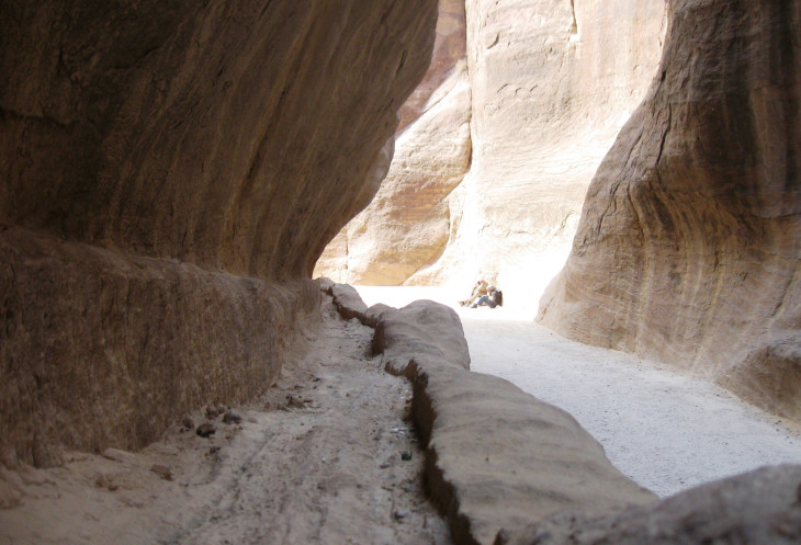 Вот он, вход в ущелье Сик (Сик с арабского переводится как "проход"). Существует легенда, что ущелье это образовалось от удара посоха Моисея. В поисках воды по велению Бога он ударил своим посохом в скалу и оттуда забил родник. Так как посох был кривой, то и ущелье получилось извилистым. В некоторых местах этого каньона солнечные лучи никогда не достигают дна.
