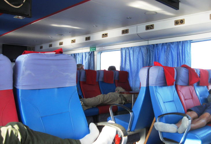 От Табы до Акабы ходит паром. Всего 40 минут в компании с ветром на палубе парома, и вы в Иордании, в Акабе. Кстати, не все наши попутчики на пароме наслаждались компанией ветра. Многие посчитали, что ранний подъем веское основание для поспать. И уютно спали в салоне парома.