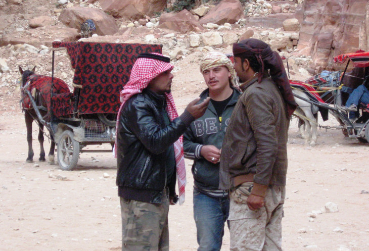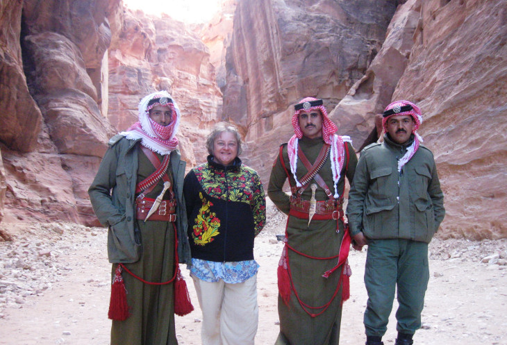Восхищению и восторгу нет предела. Как красивы могут быть камни! Как удивительны краски вокруг! А еще вокруг много доблестных полицейских, охраняющих наш покой. Делаю очень "просительные" глаза и обращаюсь к ним: - Мин фадляк(Пожалуйста!) Фото!- суровые иорданские полицейские улыбаются, спрашивают о моей степени владения арабским языком и соглашаются сфотографироваться со мной. Спасибо вам, парни!