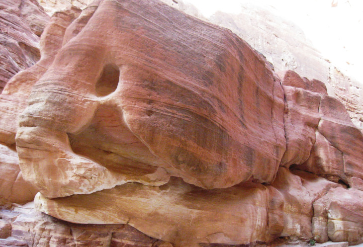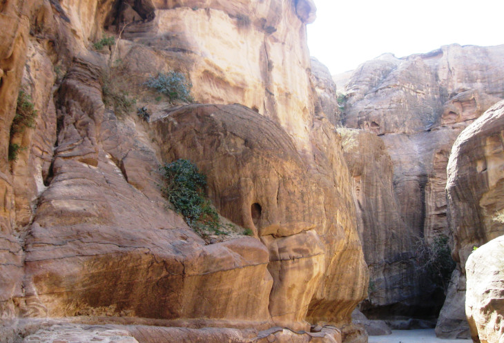 Двигаемся по дну каньона и представляем как брели караваны верблюдов по этой дороге, кричали погонщики, звенели колокольчики на шеях животных. Представляем как скрипели колеса бесчисленных телег и слышался топот тысяч ног, бредущих в город Петру.