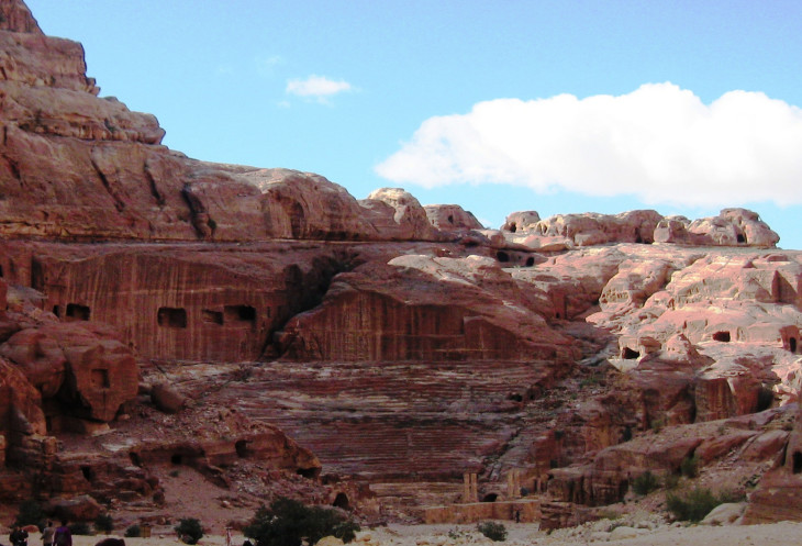 От Сокровищницы мы поворачиваем вправо и видим наследие римских завоевателей Петры. Величественный театр изрядно поврежден временем, но все еще впечатляет своими масштабами.