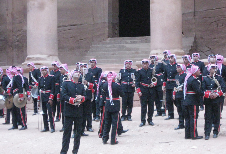 Бредем обратно ко входу в каньон. Какая удача! Большой военный оркестр перед Сокровищницей исполняет военные марши. Как красиво и самобытно выглядят военные музыканты!