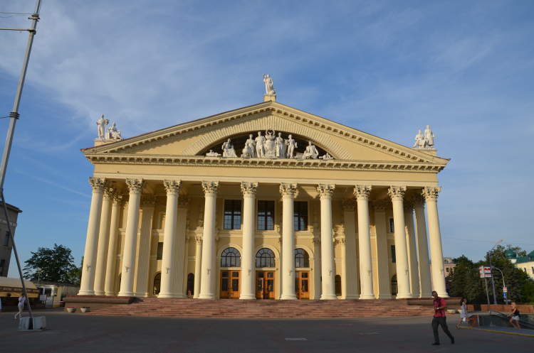 Еще одна достопримечательность - Государственный Беларусский Цирк. Он пережил очень многое за свою многолетнюю историю и сейчас является одним из самых запоминающихся сооружений Минска. Площадь перед зданием украшают скульптурные композиции.