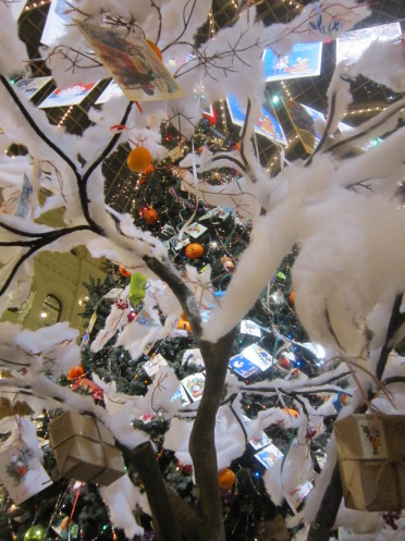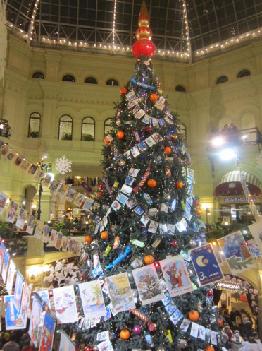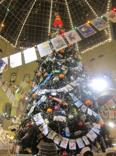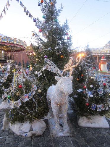 После Кремля мы решили съездить на Красную площадь,посмотреть подсветку.Выйдя из метро мы уткнулись в толпу народа.В контрасте со вчерашним днем ,сегодня было просто не протолкнуться.На улице красота.Все украшено,в нарядных домиках продают всякую всячину,каток сверкает разноцветными огнями,ледяная горка призывно сверкает льдом.