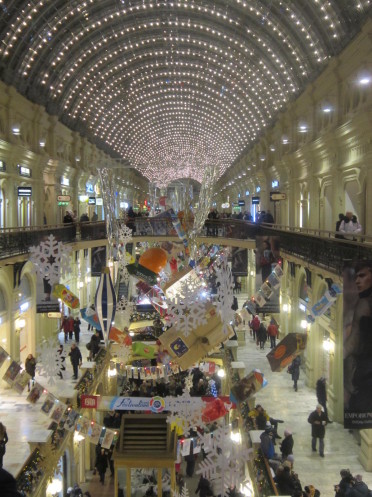 Огороженная Красная площадь была просто оккупирована народом.Перед входом была огромная толпа.Но что делать,пришлось постоять.Прогулявшись по площади,зашли в ГУМ