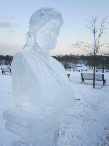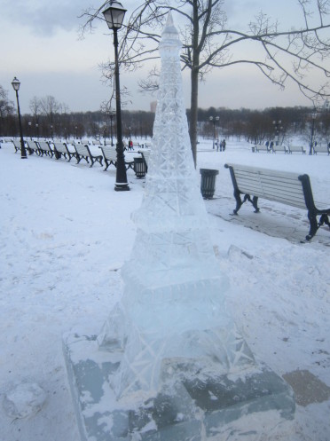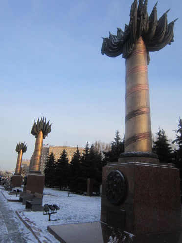 На Поклонной горе вырос целый Ледяной город.Но увидев огромную очередь,мы не стали стоять из-за мороза и ограниченного времени.Посмотрели из-за забора.Прогулялись по аллее к мемориалу Победы.Монумент в виде штыка высотой 141,8 метров на площади Победителей расположенной перед Центральным музеем Великой Отечественной войны.