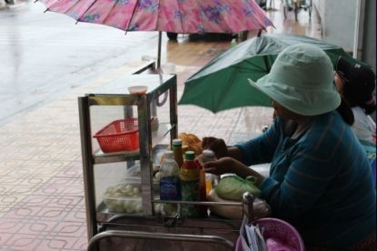 Недалеко от пляжа наткнулись на самодельные чудесные (обалденные по вкусу) чебуречки: в тесте зажаривается кусочек фарша и рядышком перепелиное яйцо. На второй раз в Нячанге специально пошли в то место и набрали штук 8 (половину схомячили по дороге в гостиницу), нереально вкусно. Я их назвал пирожки с кошатинкой:)