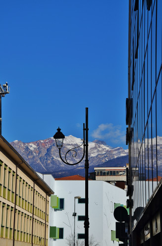 Городок симпатичный. Особенно привлекает то, что посмотришь вдоль любой улицы, и вдалеке видны заснеженные горные вершины.
