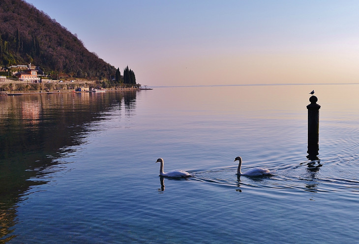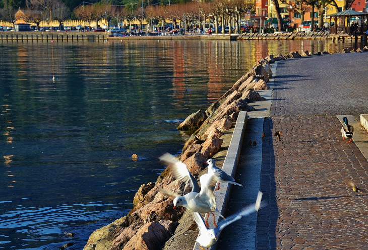 Дальше можно ничего не рассказывать. Волненья по поводу транспорта покинули нас сразу при виде этой красоты. Мы просто наслаждались видами Гарды, февральским, таким тёплым солнцем, утками да лебедями.
